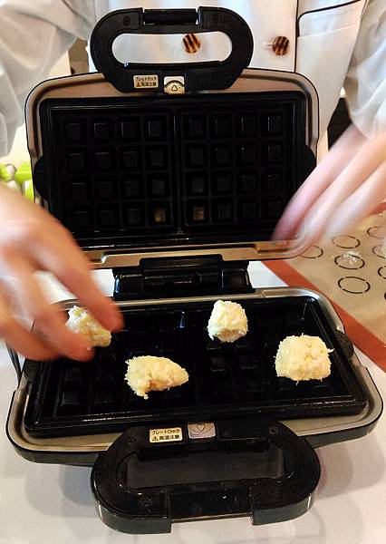 麵團拌勻後切小塊放上鬆餅機