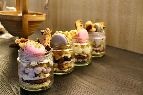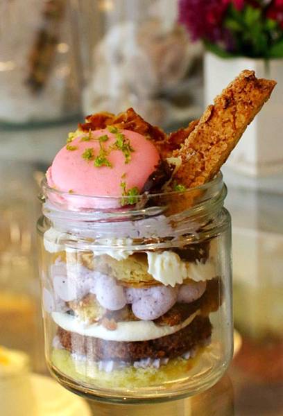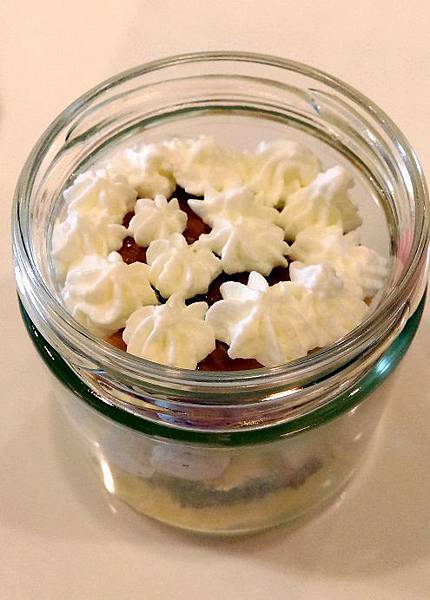 這個層層堆疊的玻璃罐甜點就是小貓的作品啦!