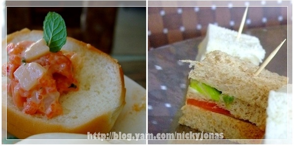 有小巧的三明治和一口麵包可以吃