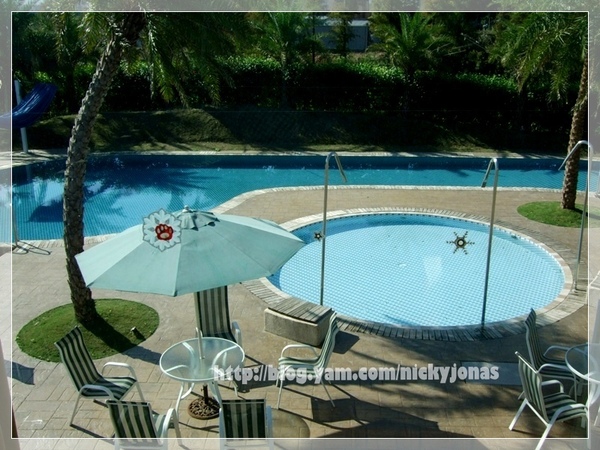 窗外則是有個游泳池