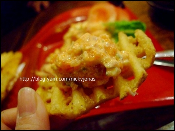 裡頭拌入了生鮪魚泥+洋蔥丁+細魚卵+蔥花