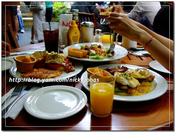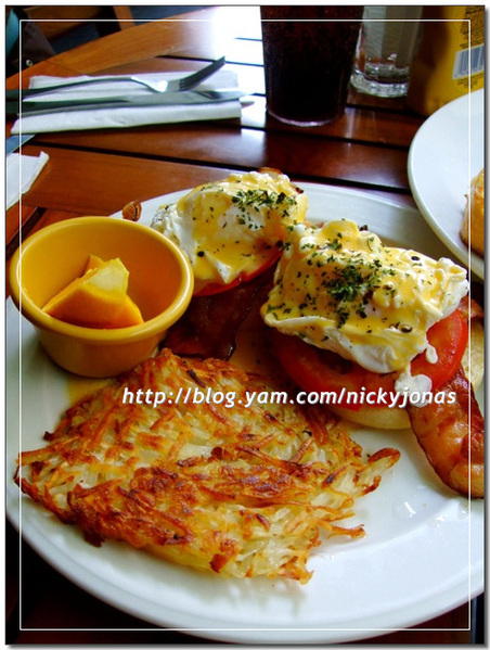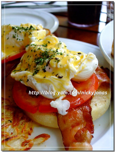 美味的"番茄培根班尼迪克蛋"260元(附果汁&飲料)上桌