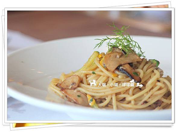 店裡最便宜的主菜是這道"香草鮮菇義大利麵"(160元)