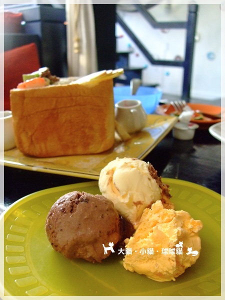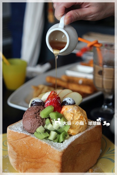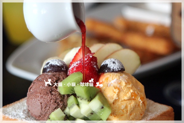 甜滋滋的冰淇淋還搭配了蜂蜜和草莓糖漿