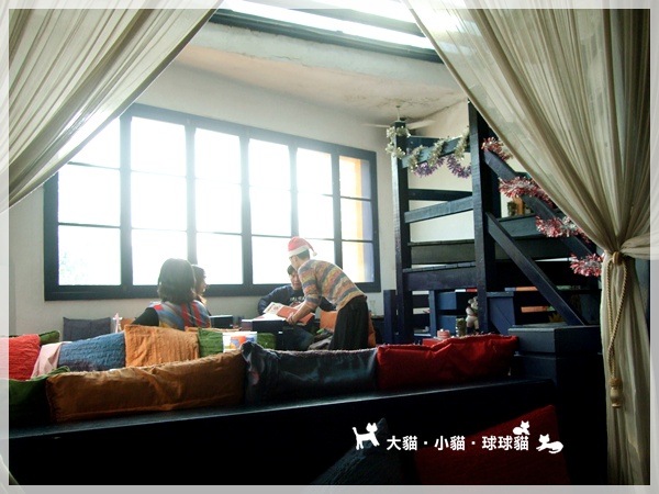 輕鬆看著小虎貓在遊戲區跳上跳下玩玩具,